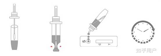 第二步:抗原检测:将采集后的拭子插入样本洗脱液,将拭子头浸泡在样本的提取液中30秒同时用手挤压拭子头至少5次,盖上洗脱管滴入3-4滴脱液到检测卡加样孔中,等待15-20分钟等待检测卡结果。