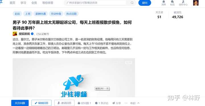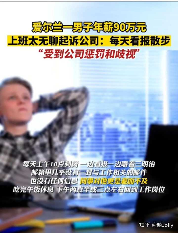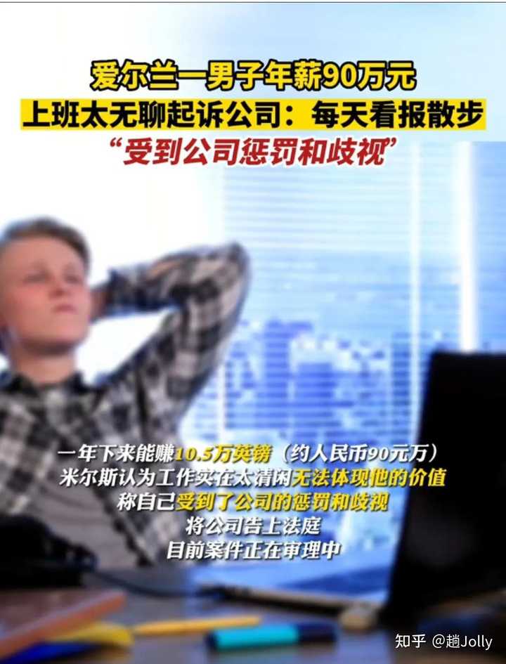 男子 90 万年薪上班太无聊起诉公司,每天上班看报散步摸鱼,如何看待此事件?