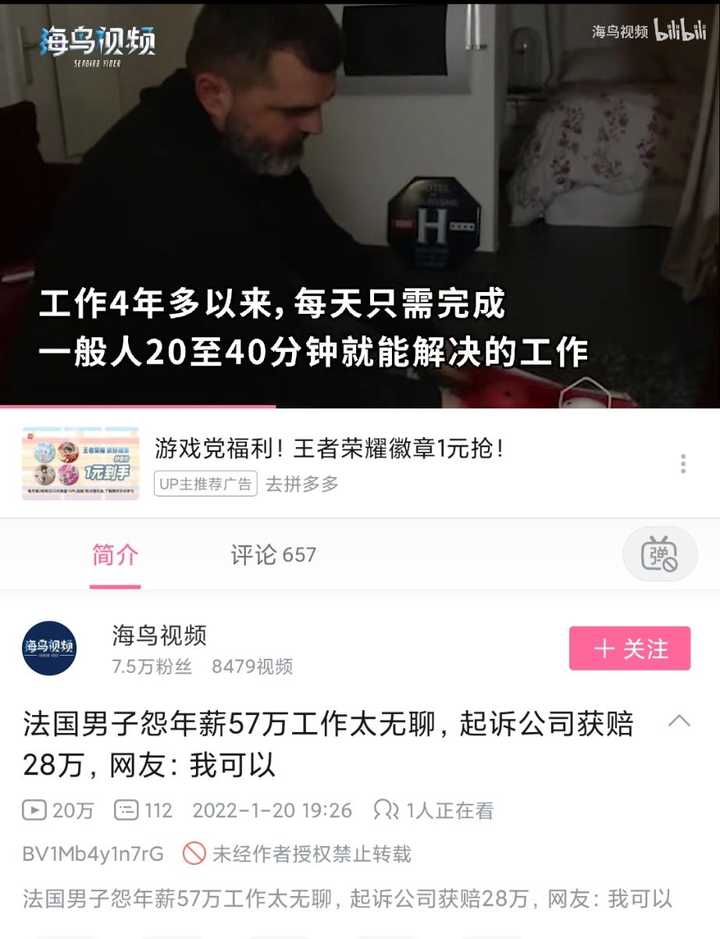 - 26 个点赞 👍爱尔兰西欧的一个发达国家,2021年人均GDP可以达到接近10万美元,人均年收入也达到了约4.9万欧,换算成人民币就是40万左右,相较来说,题目中的这位90 万年薪的男子,那是妥妥的高收入人群。 可是即便是这样,他还是把公司起诉了,认为工作太无聊,每周只有三天需要到岗上班,其余两天在家工作,去公司也是看报散步摸鱼,邮箱里几乎没有一封与工作相关的邮件,也没有任何信息,同事对他更是避而不及,这看样子是公司有意为之,否则公司同事也不会如此对待他。 诚然,对于很多人来说,觉得这样的工作不错,工资不少,又能摸鱼打荣耀,按时上下班,觉得很香。 但是,对于自己职业生涯有更高追求的人来说,认为这是在浪费自己的时间,挥霍自己的才华,他们当然是不能忍受的,而且既然公司能够给那么高的工资,说明他的确有那个能力,否则早就找理由裁掉另选他人了,至于为何演变成现在这样尴尬的局面,题目中并没有细说。 其实在国内也可能遇到类似的问题,有可能跟直属领导不对付,然后被穿小鞋,直接架空,不给安排工作内容,工资照发。 毫无疑问,在这种情况下,吃亏的还是员工自己,虽然工资照发,可是升职加薪和奖金啥的就不要想了,而且长期荒废着,工作能力不但不会增长,还会迅速下降,时间长了,如果哪天公司有异动,很可能找不到下家了就,因此还是需要通过一些方式主动打破僵局的。 如果还想继续在本单位工作,那就要主动找自己的领导去谈心,通过认错等方式,取得领导的谅解,毕竟人在矮檐下不得不低头,领导看到你的诚意后,会酌情考虑修复双方的关系,然后让你恢复正常工作内容。 当然也有一些领导就是小肚鸡肠,不管怎么认错道歉,仍然依旧,那么就要有意的通过报班或者考证等方式,尽快提升自己的核心竞争力,准备另谋高就了。 当然,如果年纪不是特别大,尝试去考公务员、考事业单位也是不错的选择,毕竟宇宙的尽头是编制,明星都对此趋之若鹜,何况是普通人呢。 编辑于 2022-12-04 19:14・IP 属地北京真诚赞赏,手留余香还没有人赞赏,快来当第一个赞赏的人吧!查看全文>> 焚香抚琴