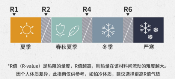 R值对应着睡垫使用温度,是睡垫保暖性的体现。