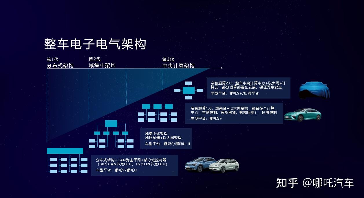 整车电子电气架构是汽车的基础底座。为了适应新事物爆炸的增长,汽车基础底座需要从分散架构调整到集中架构。现在出现了许多汽车中心大脑概念。燃油车分布式电子电气架构维持了数十年未变,发展到中央计算大脑架构,中国主机厂是最积极的,进展最快的。过不了两年,以中央计算大脑为整车电子电气架构的汽车将会面市。就如同当年发展ios、android一样,中央计算大脑的汽车可以承载更多互联网应用,汽车将成为互联网又一个载体。