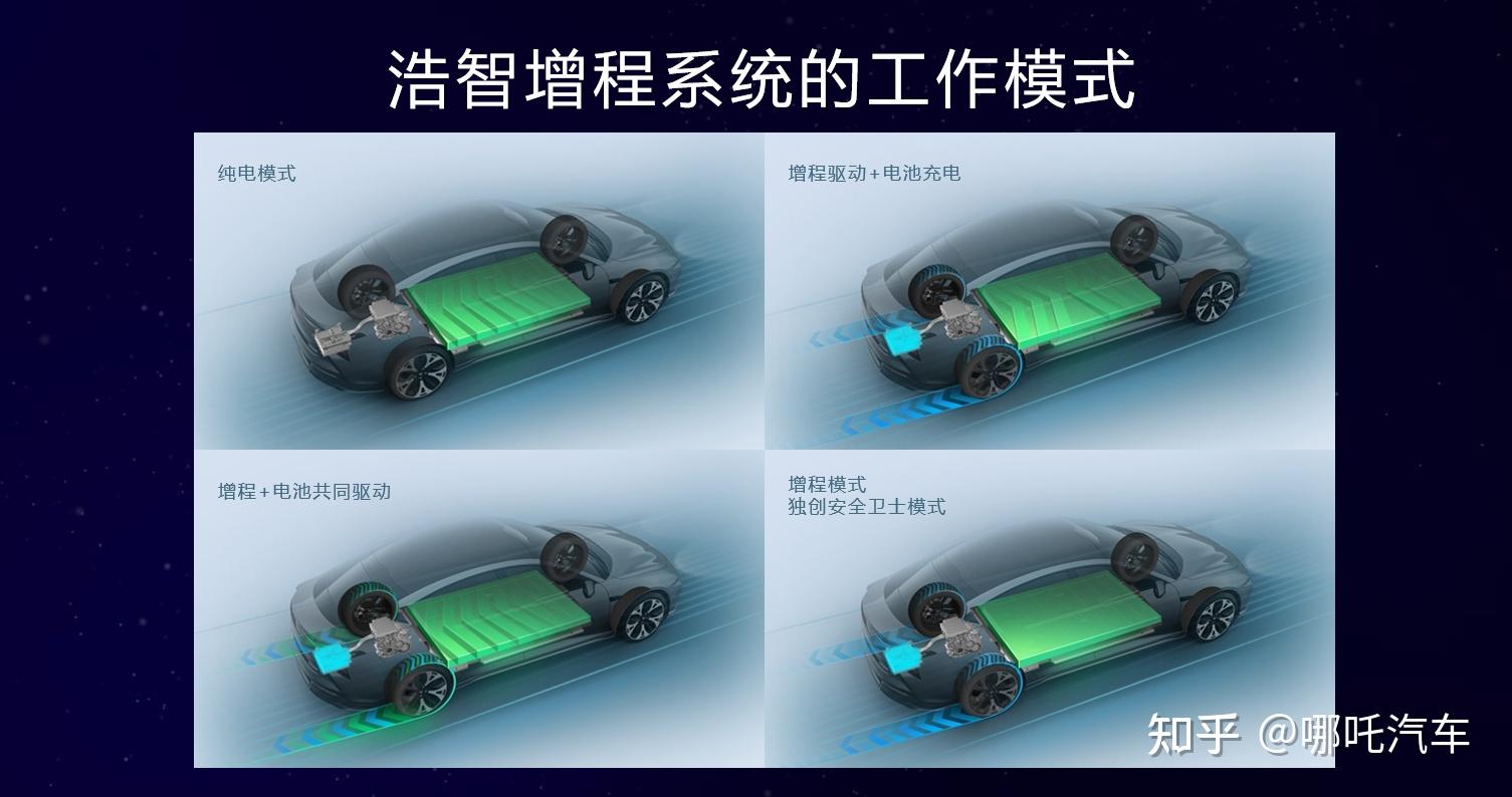搭载的浩智增程器,高度集成三合一设计,体积小、效率高、NVH好,整车油耗低。同时,浩智增程器在哪吒S上还实现了独特的安全卫士模式,以及基于人-车-路的智慧预测能量管理。