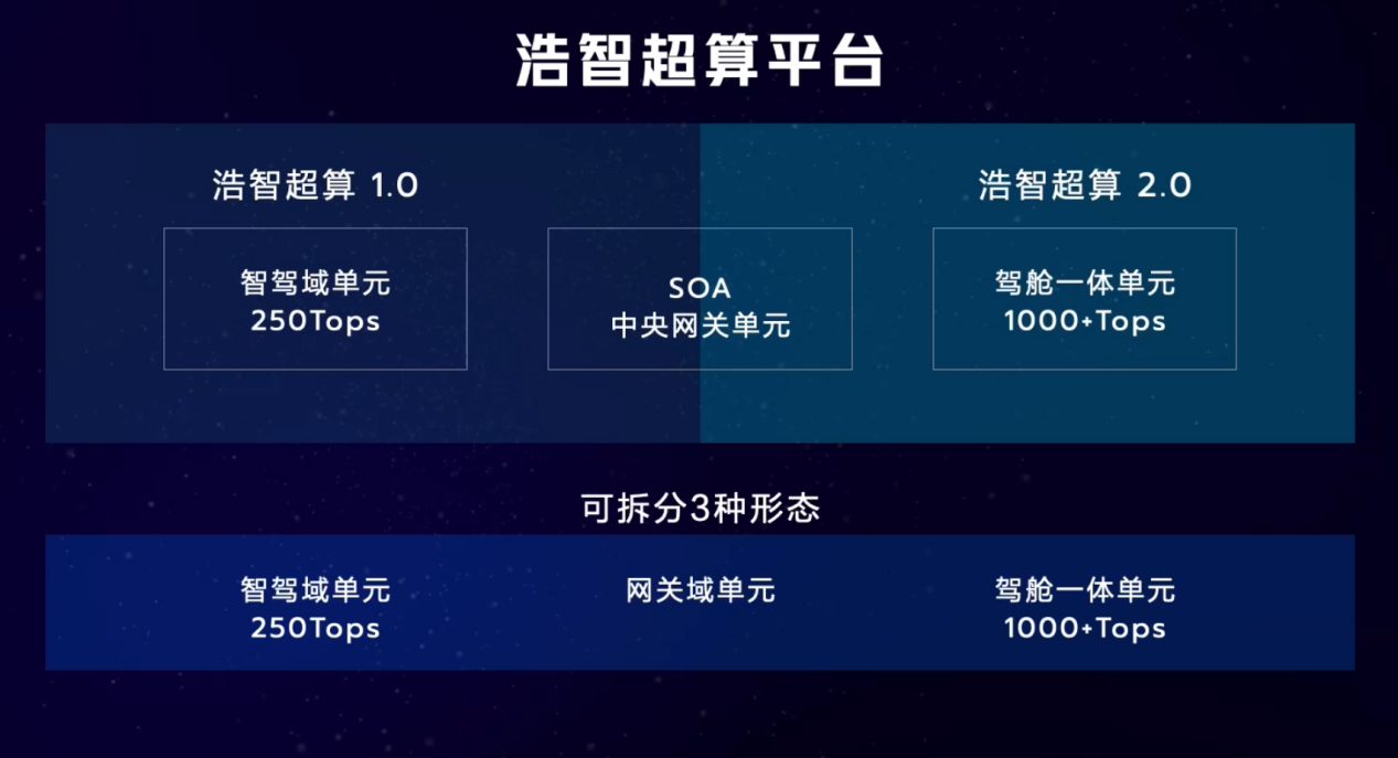 哪吒汽车在下一代车型上将搭载的浩智超算1.0,使用的是前面提到的中央计算架构(域融合),而刚刚发布的浩智超算2.0,则是使用的基于云计算的中央计算架构,也将会在后续车型上搭载。