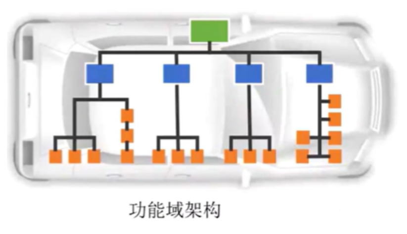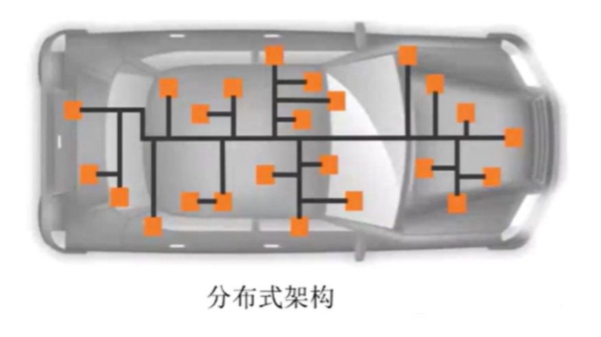 分布式架构:由上百个ECU(电子控制单元)组成,每个ECU负责操作一个模块,这是初代智能汽车的电控架构,之所以被淘汰主要是因为ECU模块太多,设计冗杂,成本还高,开发复杂费时费力。