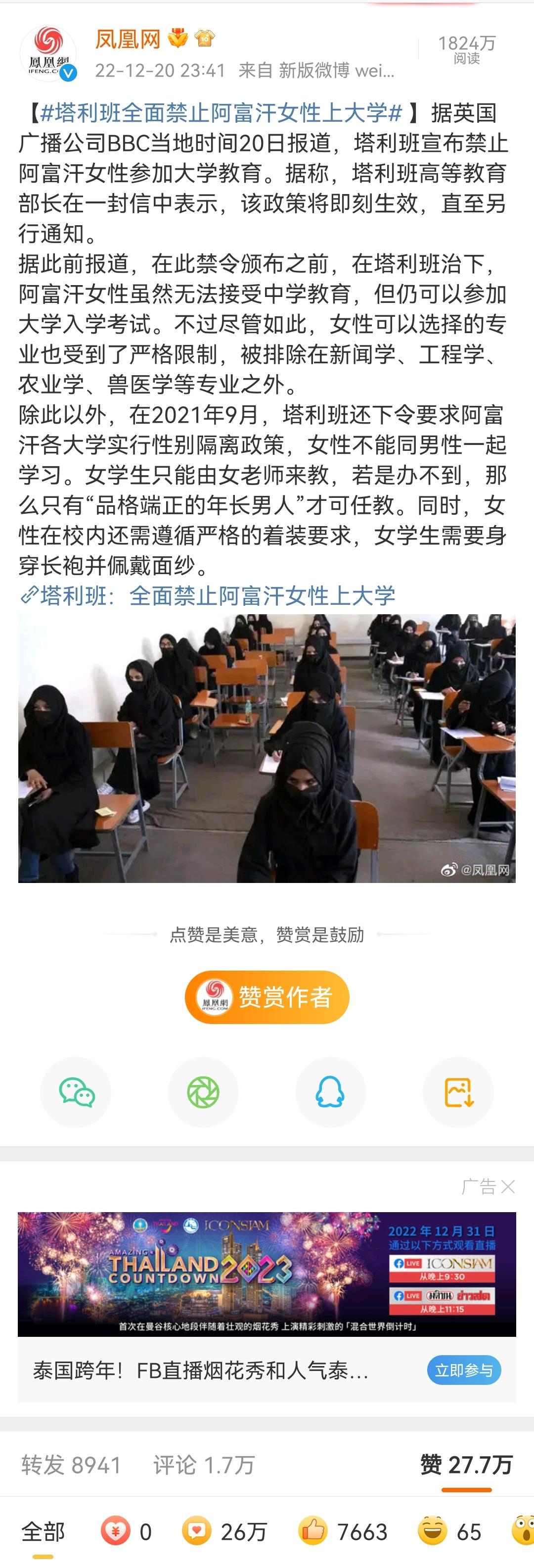 阿富汗妇女不能上学,没有受教育权,这个没有任何问题。但是国内呢?