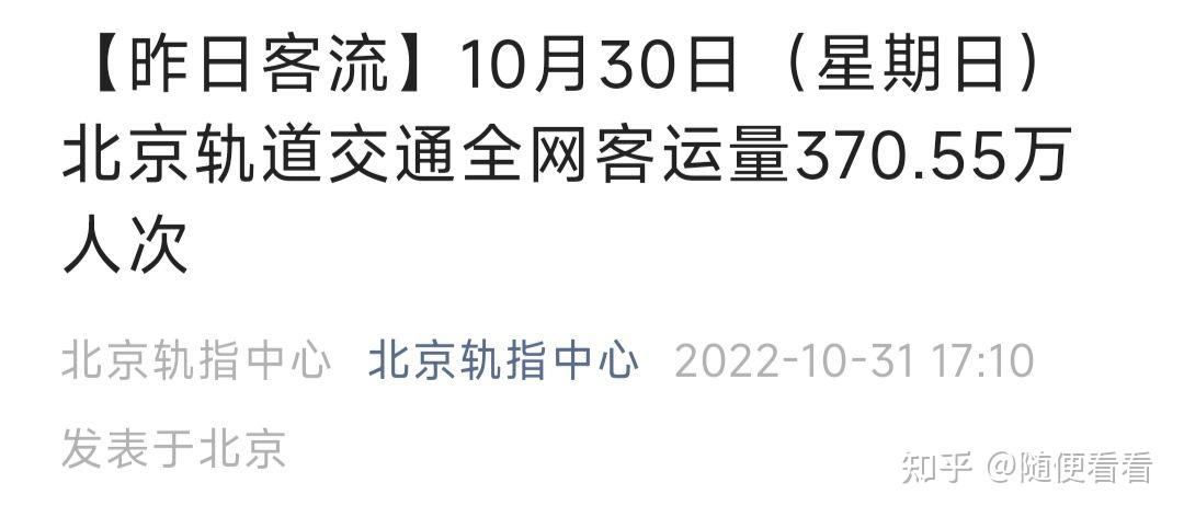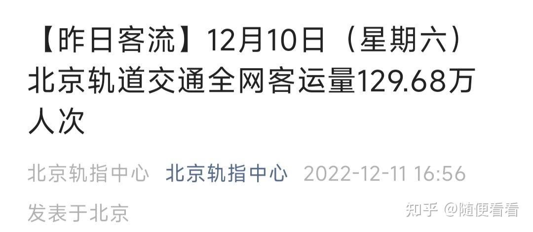 按10的倍数截取北京轨道交通客流量图 之前工作日在800万上下,周末在370万上下 现在多少呢? 发布于 2022-12-25 21:22・IP 属地上海 赞同 1添加评论分享 收藏喜欢 收起