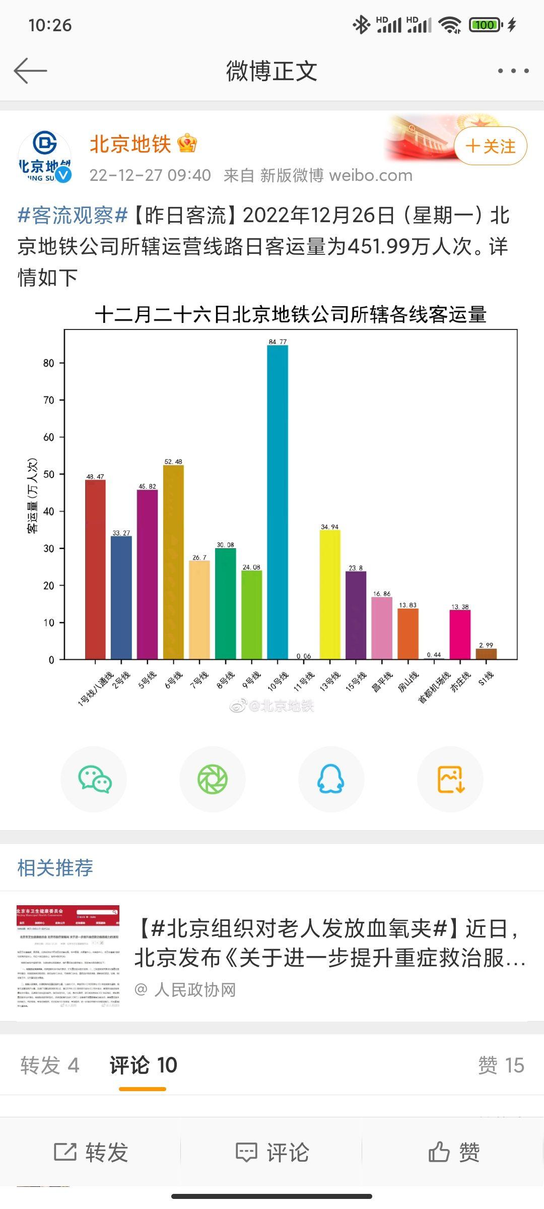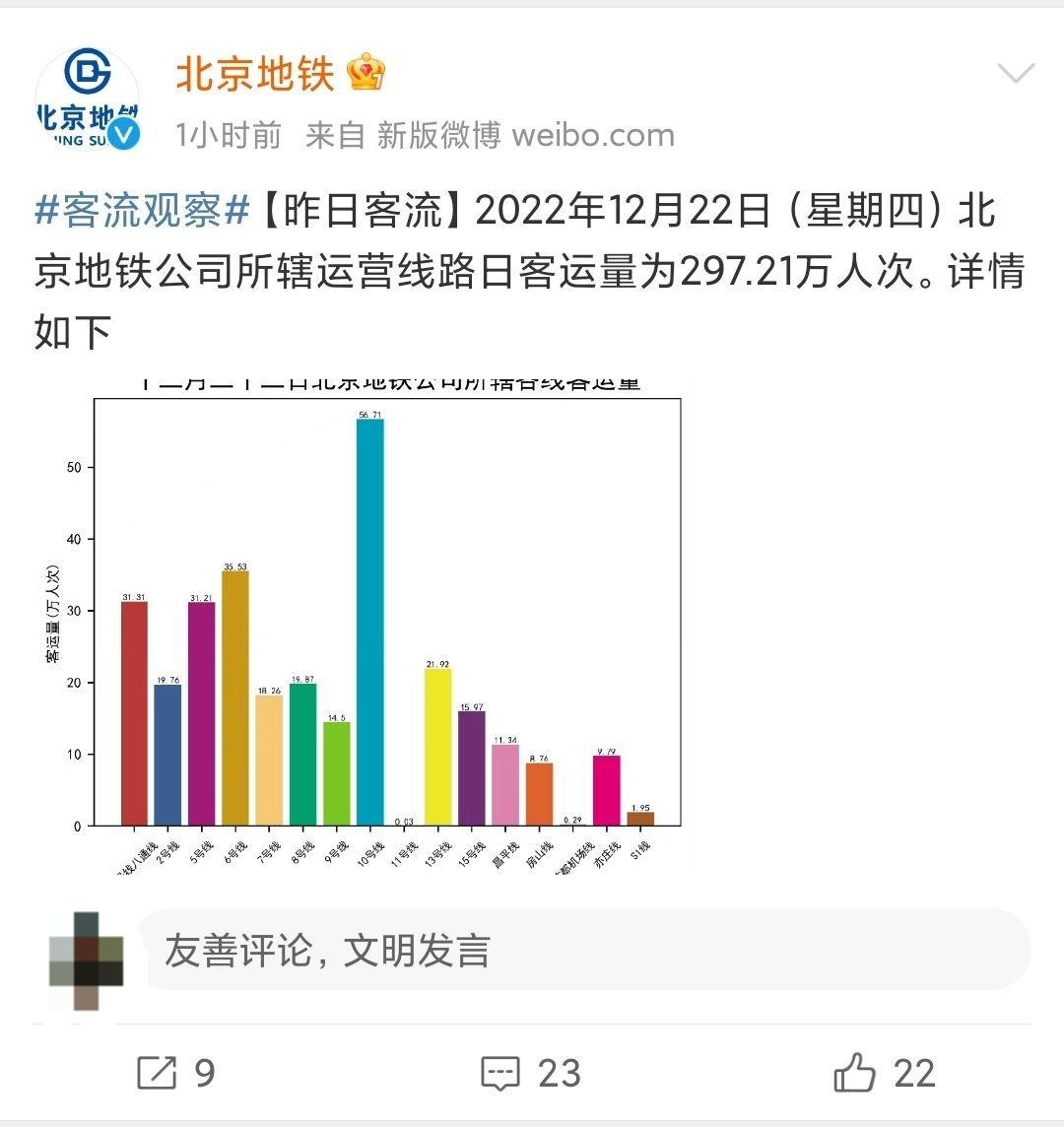 11月26日更新,451万人次。 2022年12月22日(星期四)北京地铁公司所辖运营线路日客运量为297.21万人次。 上周四的数据为124.22人次。 编辑于 2022-12-27 10:30・IP 属地陕西 赞同 85 条评论分享 收藏喜欢 收起