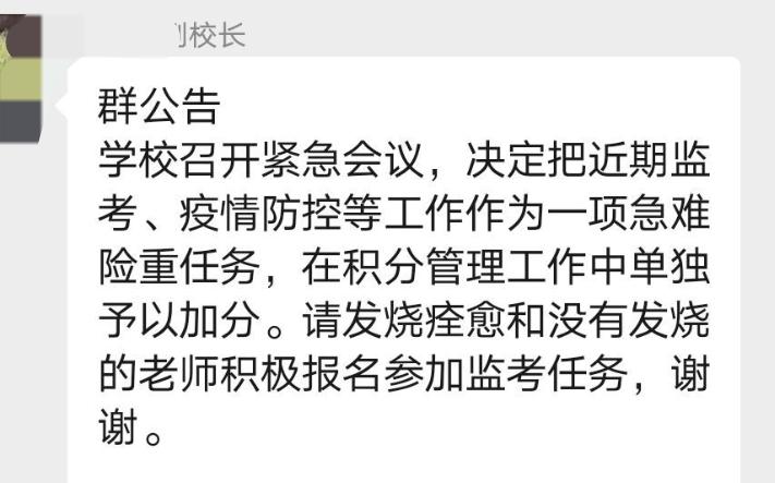 如果说,考生去是带着必胜信念搏一搏命运的车轮,监考老师去,是为了个啥呢?