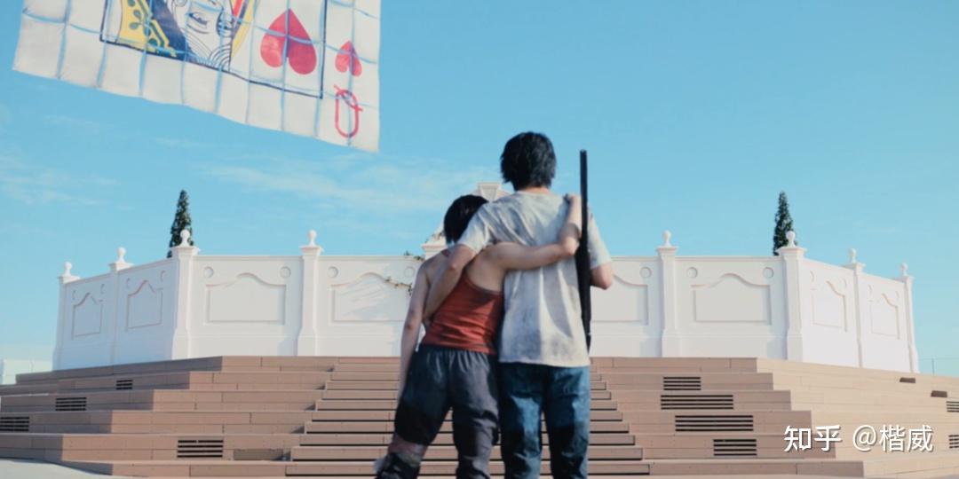 其实这个点,本来可以做得更好。毕竟在蓝灯拍成红灯的追逐游戏里,那个自以为是的“女老大”,最后也输掉游戏,也是选择一个从高空坠落的姿态,来完成自己的“完美谢幕”。但这两个相呼应的动作只是成为了一组“行为艺术”,停留在那里,他们仍然代表愿意留在游戏世界的那一类人。