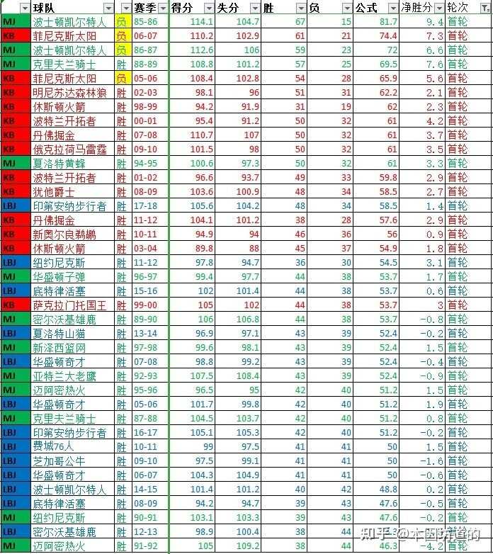 决赛对阵球队,平均胜率69.5%,大致接近于57胜25负的球队,场均失分93.7分;总决赛对阵球队,平均胜率67.6%,大致接近于55胜27负的球队,场均失分92.5分。