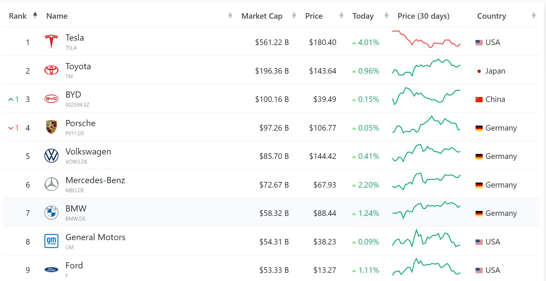 这个世界上市值最高的三家汽车公司,并没有德国企业呀。