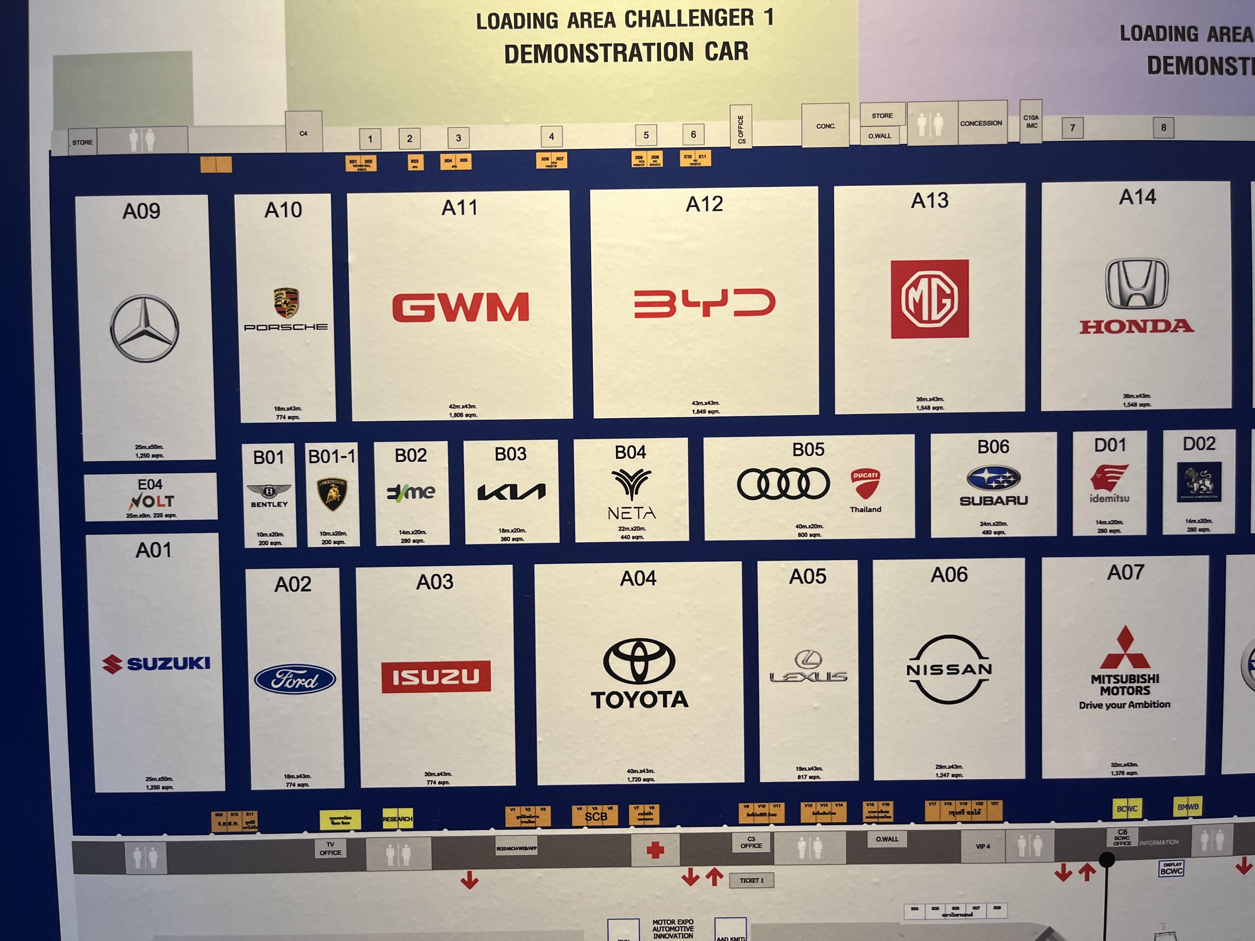 这是我刚刚参观的泰国曼谷车展的展位图,中国车企已经形成了跟日本车系全面的竞争。