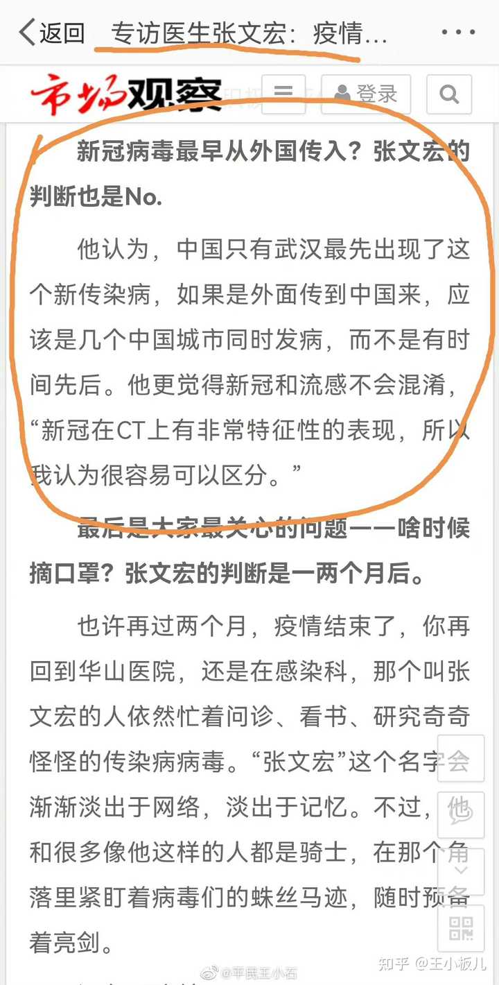 巧的是:张在病毒流行初期曾很隐晦的表示,病毒来自于武汉海鲜市场,只是后期国家很快拨乱反正,没有大媒体跟进宣传,但互联网毕竟是有记忆的。