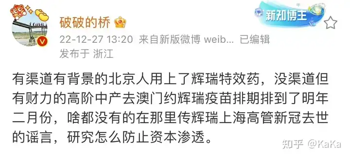 同病房89岁老太,天天高烧,医生丝毫没有办法,他儿子搞到辉瑞,第二天体温就37度多,第三天降为36度多。