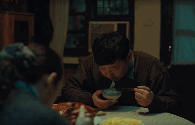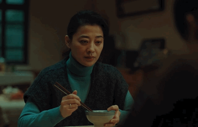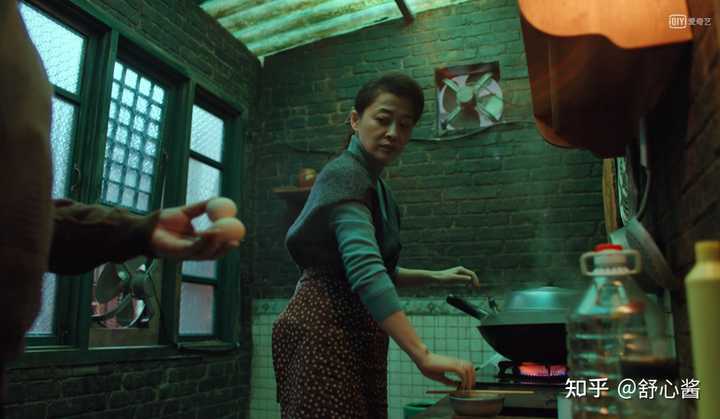 在厨房中老李以熟悉的打下手姿态递给她两个生鸡蛋,在饭桌上她夹出的这一筷子熟鸡蛋却饱含着生分、郑重、复杂的愧疚情绪。