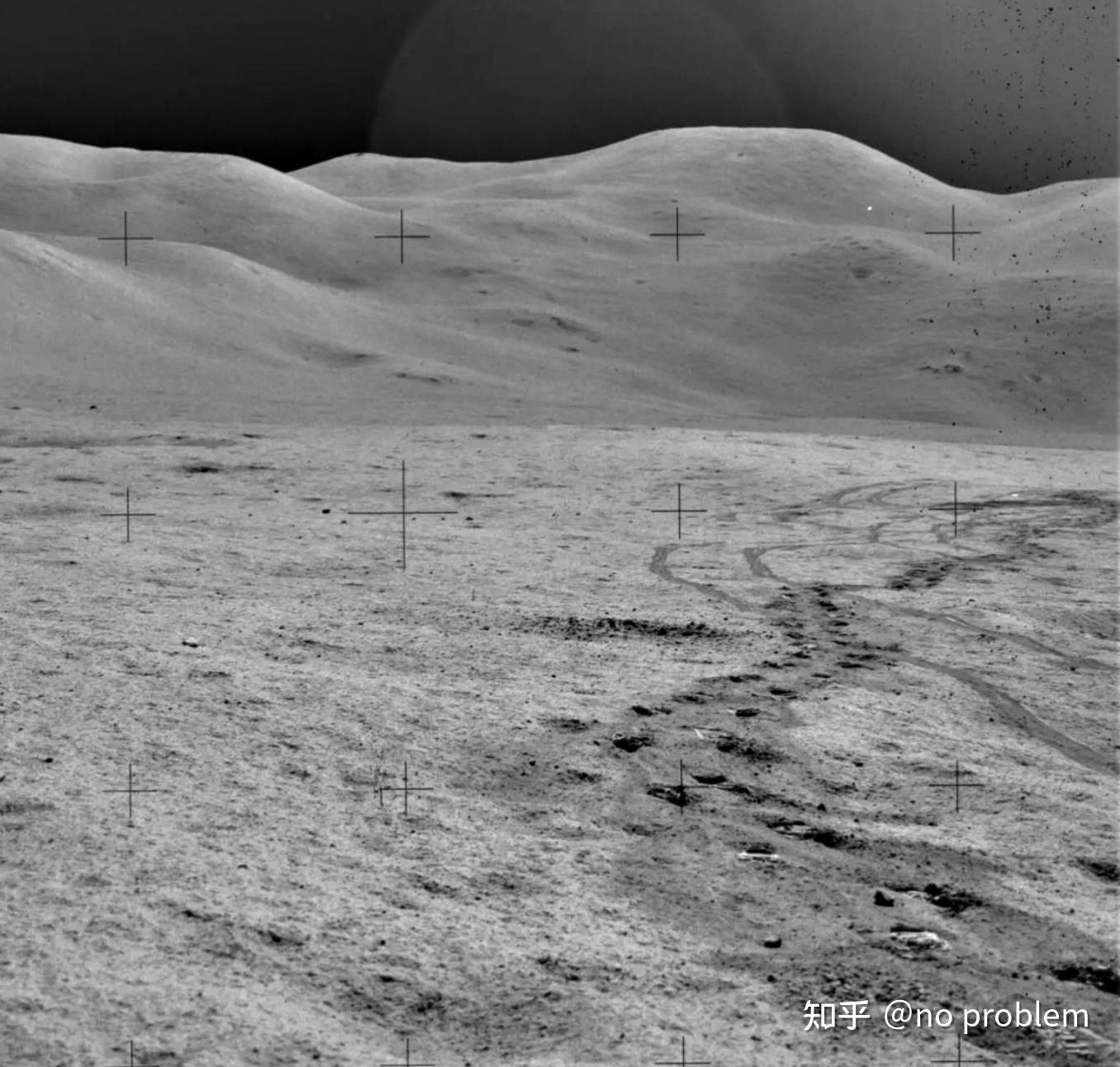 毫无糖霜的那张是玉兔拍摄的,有糖霜的反而是阿波罗月球车拍的,难道又是外星人动了手脚?
