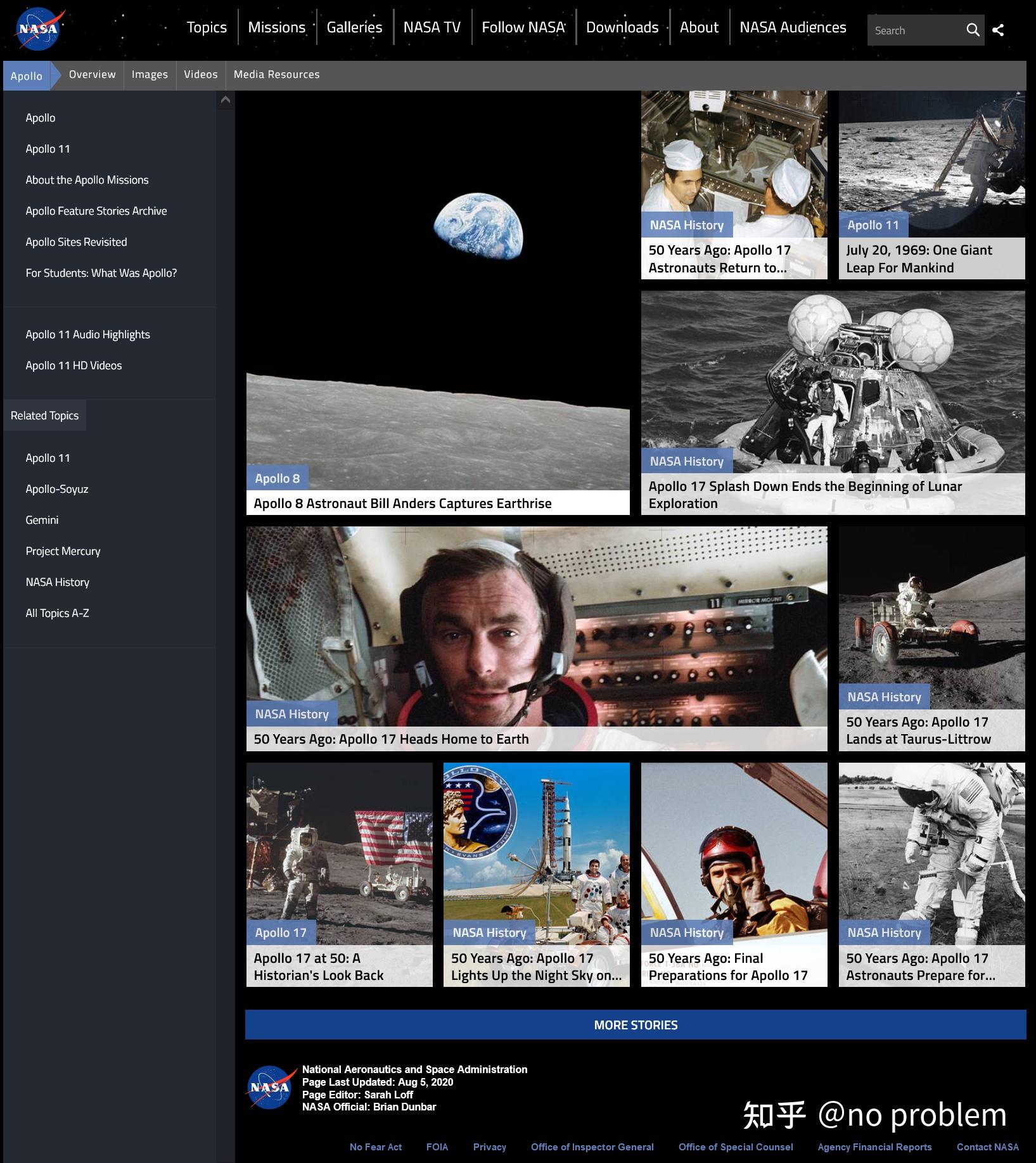有了以上基础航空航天知识,接受过良好教育的朋友应该已经明白登月阴谋论有多可笑了。给有双商在线不想看搞笑登月阴谋论的朋友提个醒,NASA官网有Apollo专栏,资料极其详实,文字图片影像资料应有尽有,完全无视不学无术的登月阴谋论患者找茬,欢迎大家多多了解真正的科学史实: