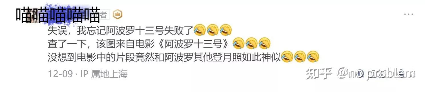 顺便给大家展示下某些回答里之前用的照片:结果被网友提醒阿波罗13登月失败后之后急急忙忙换了幅电影照片,号称放的是剧照,没想到早已经被网友截图了,这两个照片中的登月舱长得也明显不一样啊?