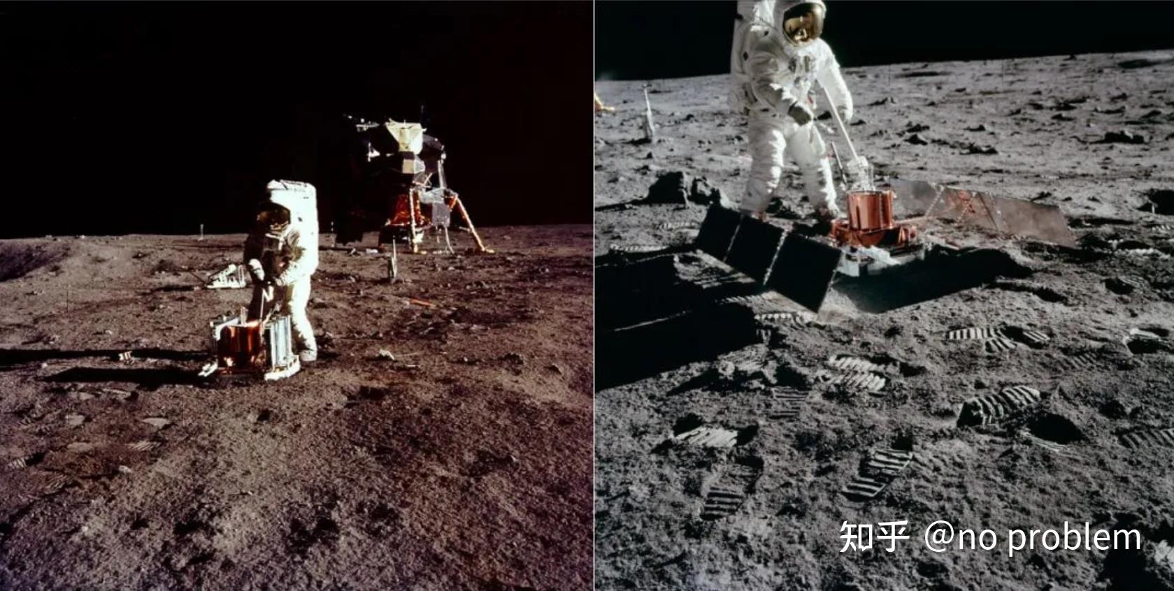 如果还有人嘴硬说NASA可以伪造月震,那怎么解释多个国家的探月飞行器飞过遗址上空都拍到过外形完好而且远离登月舱正常展开放置好的月震仪?以当时的技术水平,是人工安装月震仪简单还是开发一个机器人做同样的事更有可能?阿波罗11遗址照片 有不少朋友老是吵着闹着要看登月宇航员的痕迹,其实多的是,只不过有人自己不学无术查不到而已,上面这张月面照片里就可以明显看到激光反射器到右边陨石坑之间有宇航员脚印踩出来的小路,难道也是机器人踩的?美帝50年前机器人就这么牛了?这机器人踩完路之后还知道躲在看不见的地方免得被相机拍到?这AI真牛啊!应该是马斯克派Optimus坐时间机器回到1969踩的吧?哈哈哈哈哈