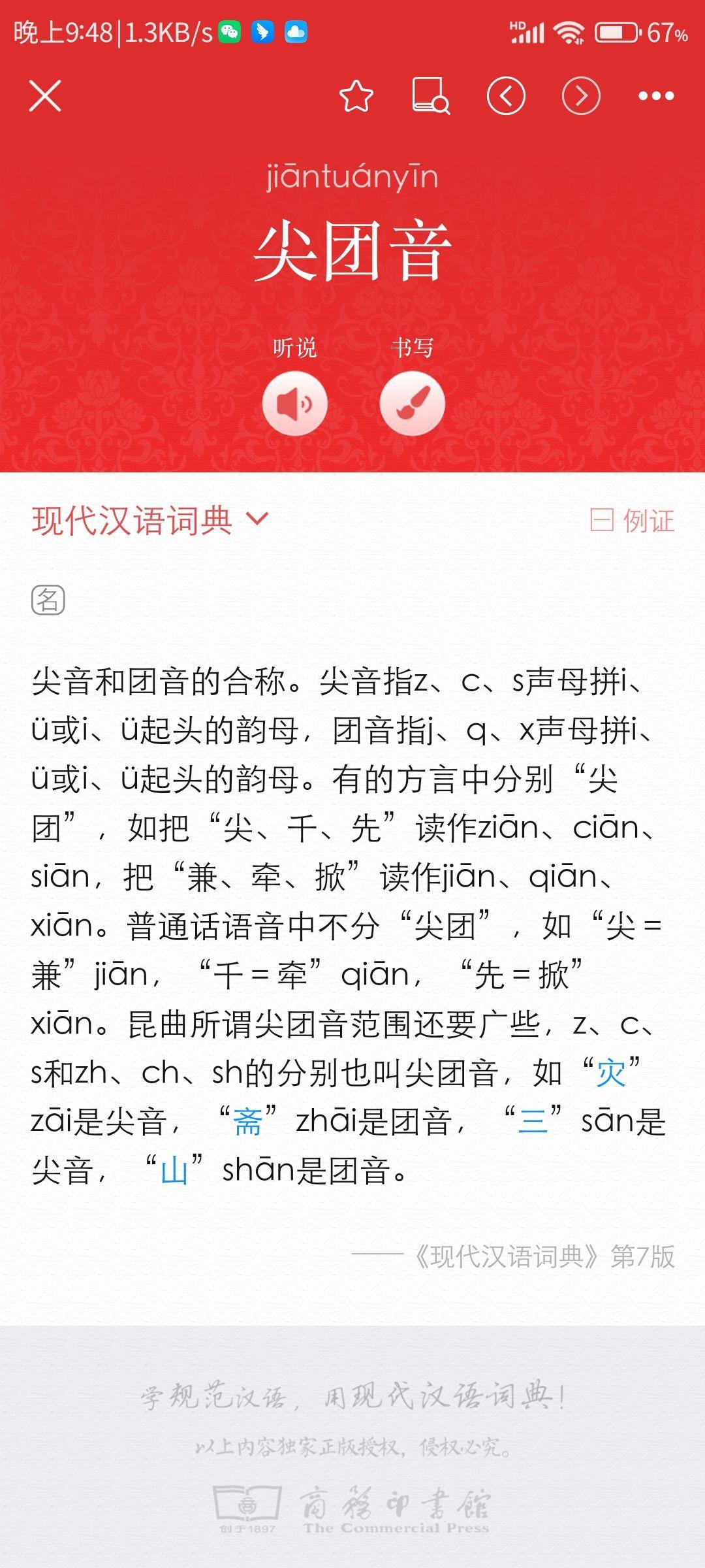 什么是尖音?什么是团音?简而言之,zcs接i或ü就是尖音,jqx/gkh接i或ü就是团音。