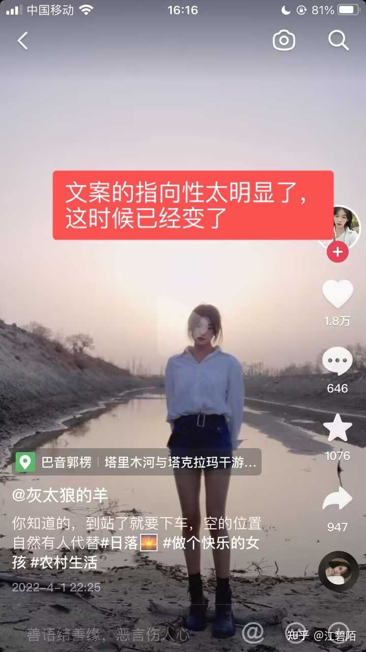 把灰太狼的羊原账号的一百多个视频翻完了,每个视频都在不同角度展示女主的独特风华,出尘脱俗的气质,据本人猜测,极有可能是个女版的自恋型人格障碍(npd),如果是人格障碍的话,这一切都能解释得清楚了(但也仅仅是猜测,不过特征明显蛮符合的,翻车出轨意料之中。