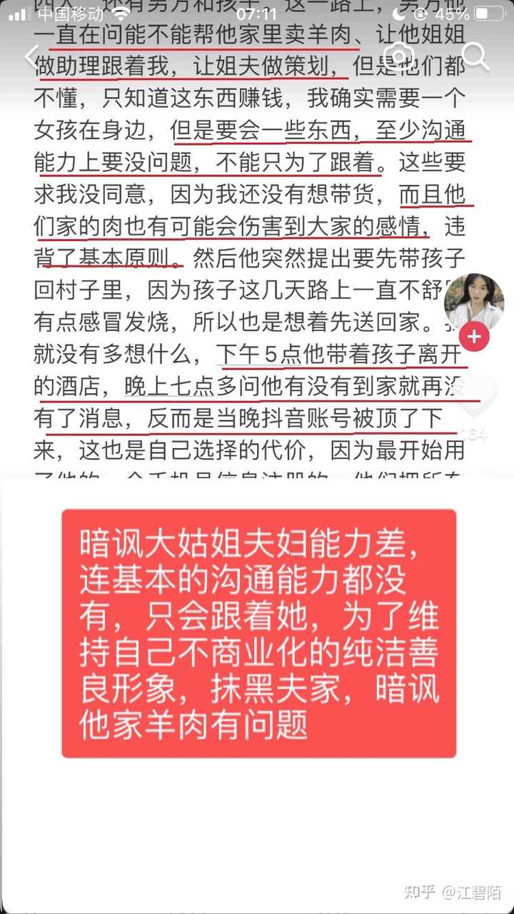 看不起大姑姐,小作文暗讽姑姐啥也不懂,唯利是图,抹黑夫家的羊肉质量差,伤害到网友的感情。
