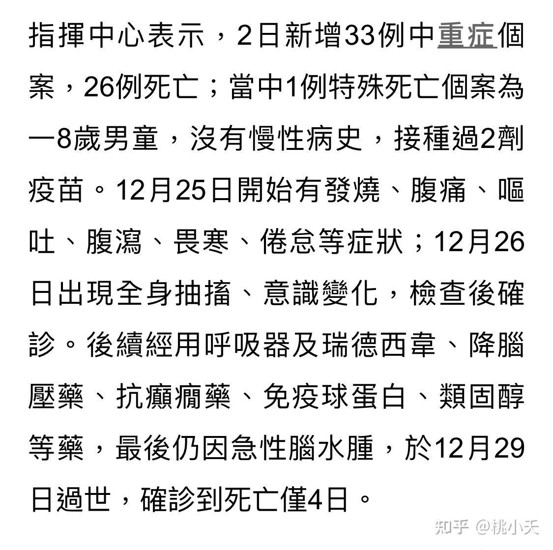 1月2日,台湾通报一例八岁儿童无基础疾病,接种两剂疫苗,感染新冠后四天,因为急性脑水肿亡故。