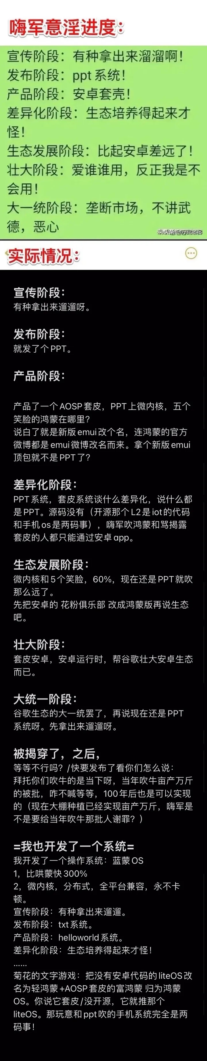 手机哄蒙和miui,color os完全是一个样的东西,宣传微内核、自研的营销获取不正当竞争优势,破坏国家公平的市场环境,破坏国家和民族实事求是的科研环境、篡夺埋头科研人员的资源和荣誉,是对民族未来的戕害,见: