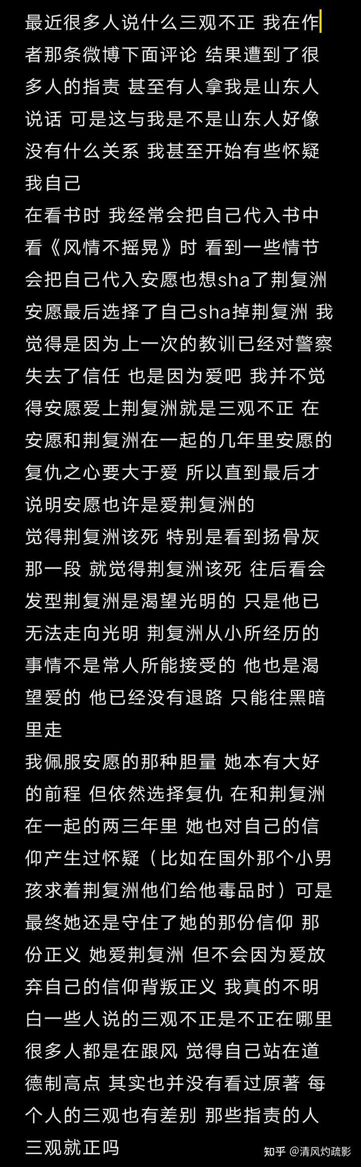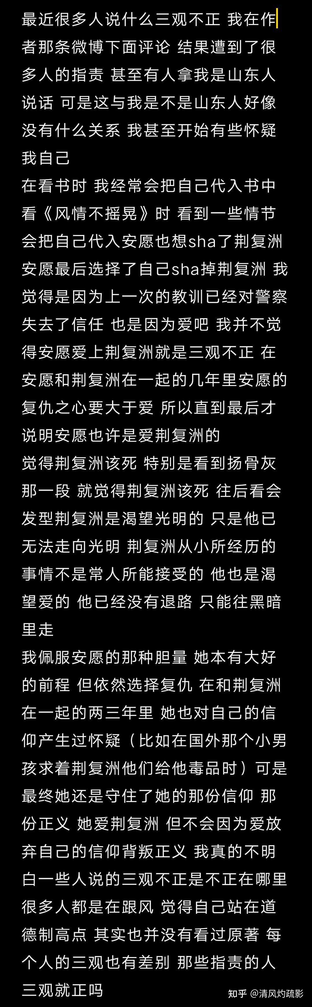 是《风情不摇晃》这本书,不配这样的高度和热度。首先说这本书本身有问题么?我认为是有问题的,但并不至于到判定为美化贩毒。但是被禁也是应该的,因为这个作者就是描写的含糊不清,态度模糊,说白了她没把握好分寸。我认为这个罪名明显是过重,甚至在我看来有点“栽赃”的意味。