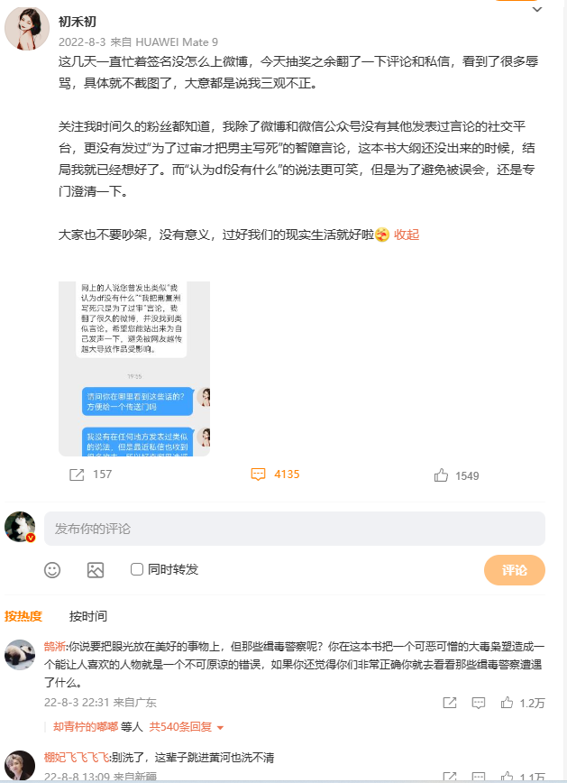 我劝她最好之后别出来道歉,说不知道自己的作品会产生不好的影响。