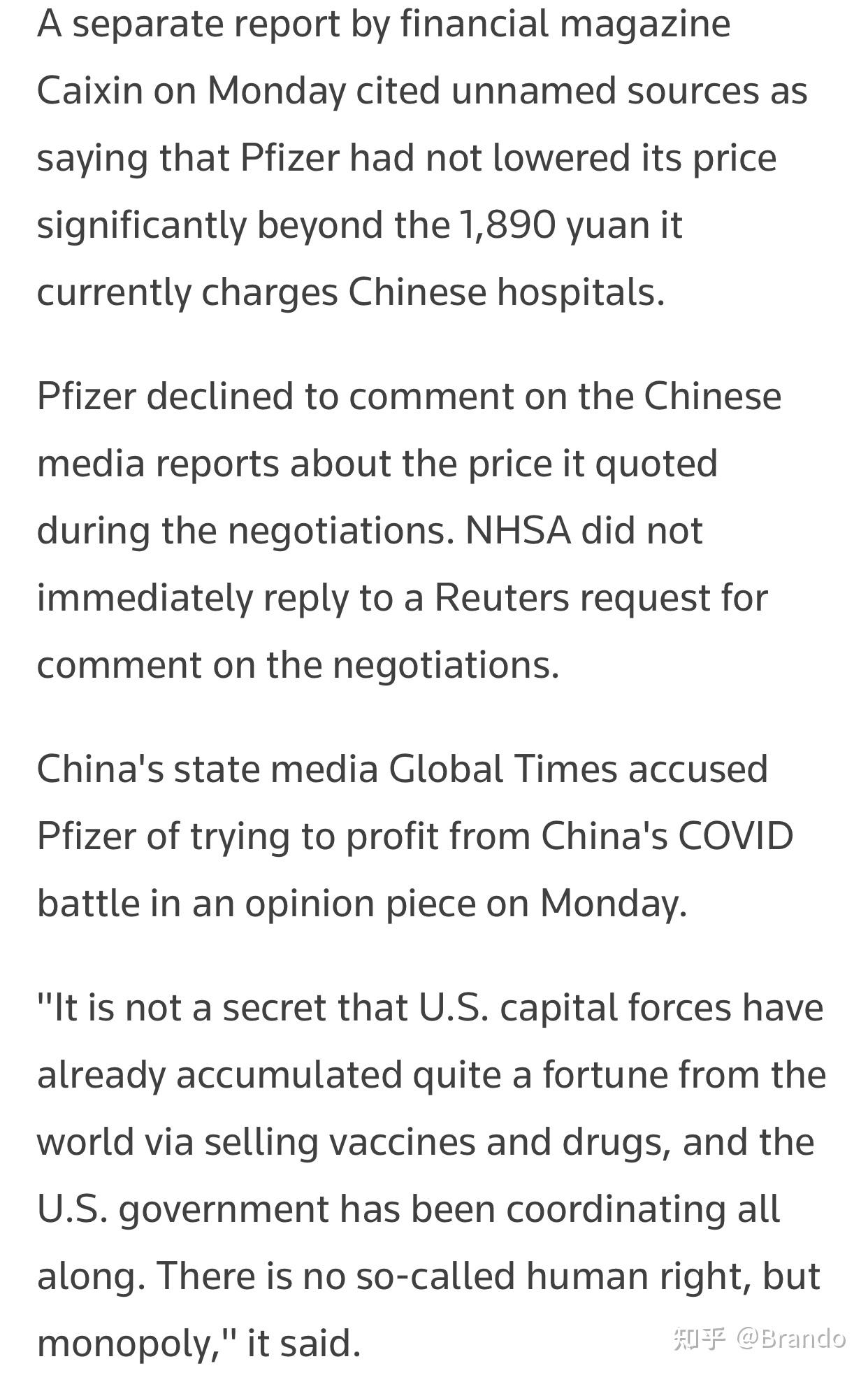 辉瑞给中方的报价已经比很多国家低很多,但还是谈不拢