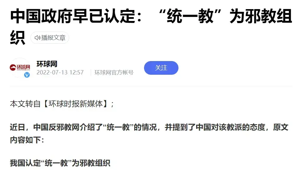 现在,日本人反应过来了,这韩国统一教,是邪教,哪怕在中国也是被认定为邪教!