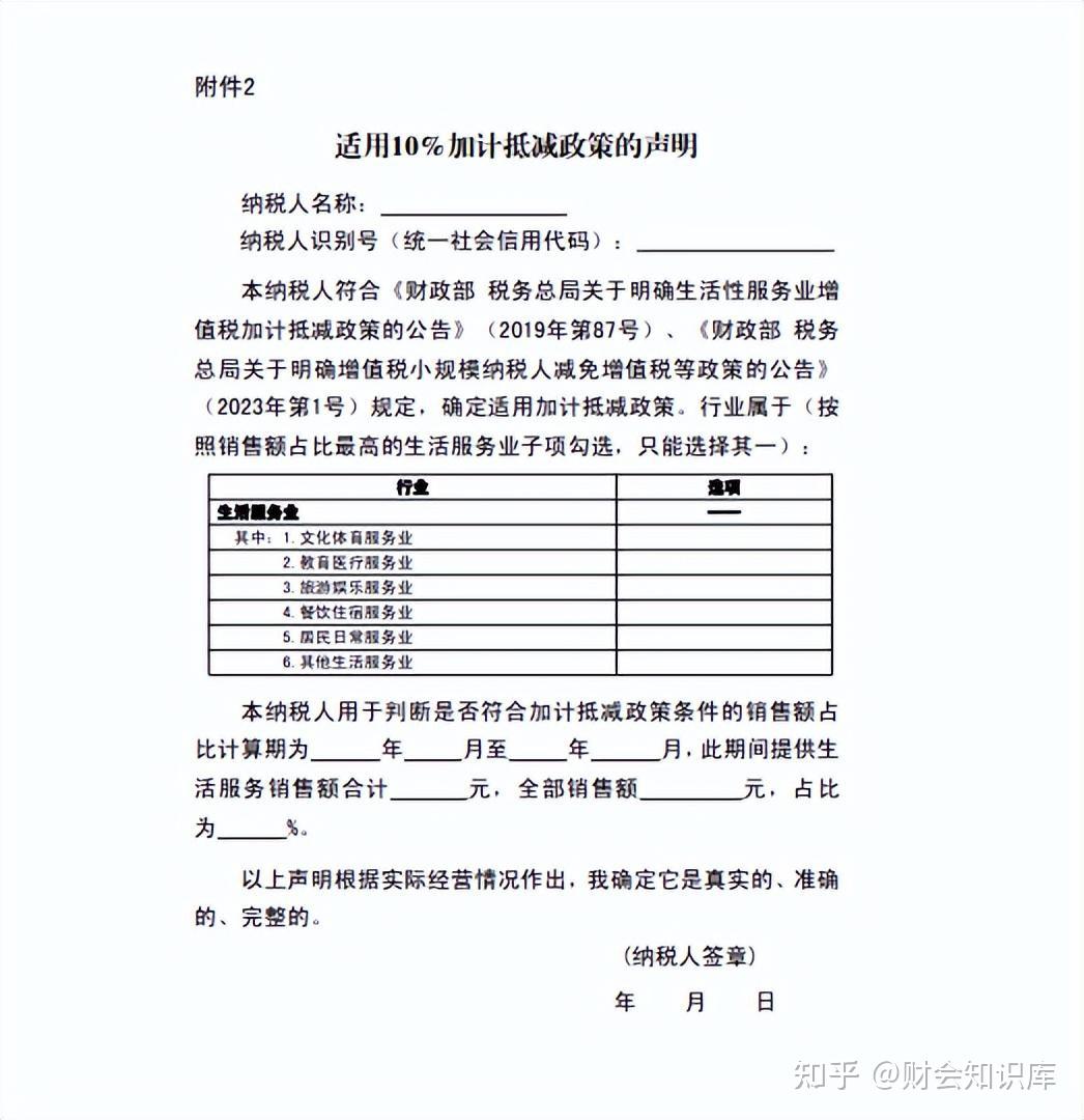2.适用10%加计抵减政策的声明
