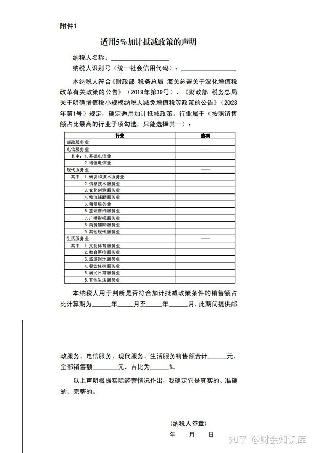 附件:1.适用5%加计抵减政策的声明