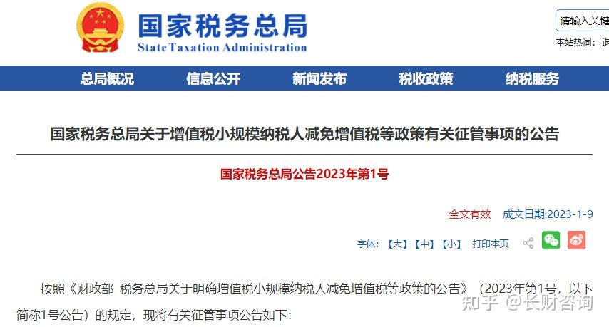 按照《财政部 税务总局关于明确增值税小规模纳税人减免增值税等政策的公告》(2023年第1号,以下简称1号公告)的规定,现将有关征管事项公告如下: