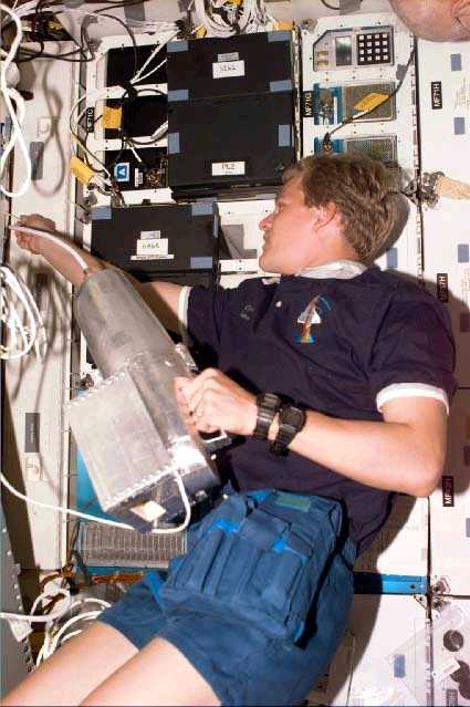 在航天器里脱落的头发和皮屑、烹饪食物或进行饮食时掉落的碎屑之类要用吸尘器收集起来,装进可以密封的垃圾桶或垃圾袋,以免小块垃圾钻到各种仪器里造成故障或被人吸入。
