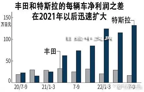 其实丰田这个销量不错了,主要是它22年一直降价换销量,21年还加价的车现在都降价促销,还没去年卖的好。这俩品牌单车利润一对比更明显,特斯拉和丰田在21年初单车利润差不多,这也就过了一年多现在特斯拉平均每辆车的利润是丰田的8倍!比奔驰、宝马还赚钱,你说总有这种事儿是不是说不过去。