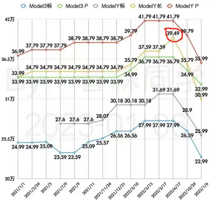 以Model Y长续航版本为例,价格从39.49万降到30.99万,降幅21.5%。
