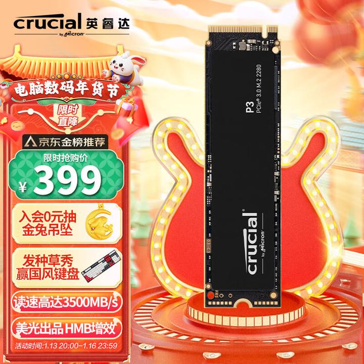 另外,如果说完全不在乎速度,能接受QLC颗粒的固态硬盘,那英睿达美光P3就更便宜了。