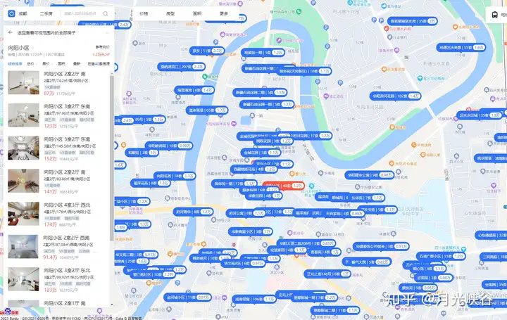 随手发个安居客的截图。反正附近几个小区水韵天府、华孚新大陆和三九绿城都很便宜,蓝光花满庭也不贵。可能因为我们这一堆都是小开发商房子的缘故,距离不远的龙湖、绿地世纪城的房子就比我这一块贵多了。