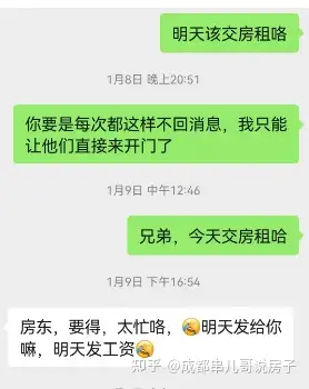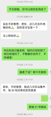 晚上10点到,结果依然只是拖延的话术 直到今天,他也一直没交房租,也没来搬东西,总会有各种理推脱。