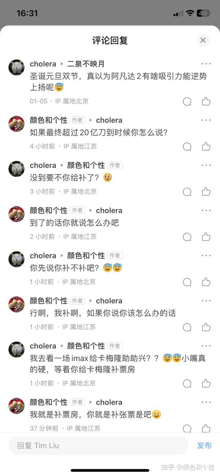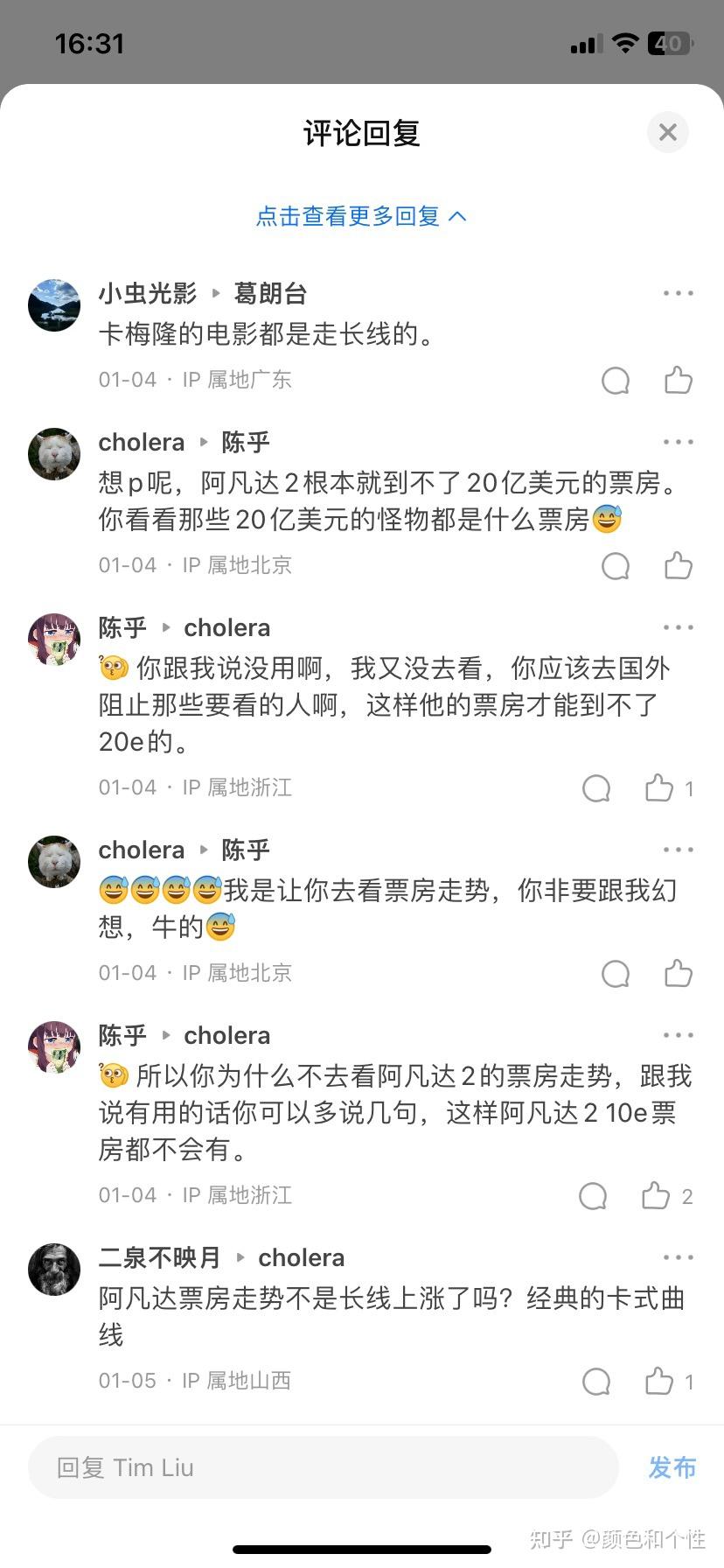 首先就是,关于《阿凡达2》的票房的问题,充斥着大量的“不问是不是”,“反正我不喜欢”,各种阿Q式打滚,什么回不了本,反正在中国票房不高之类的。你看,这个问题下面还有呢。人家问的就是票房问题,你是不识字么?你回答那些有用么?关于《阿凡达2》感想的问题也不是没有,你不喜欢你去那里回答呗。“反派影评”给《阿凡达2》打了5分(10分满),我感觉批评的有理,打得好。你呢?你就发现,现在很多人,活到连怼到脸上的客观事实都不会承认,永远活在自己幻想的世界里。所以我说他们的小作文都写好了,就等着《阿凡达2》滑铁卢呢。结果现实就是人家票房一路高歌,这头《三体》动画罗老师狂吃压缩毛巾。但是哪怕《阿凡达2》票房为0,去年票房前八还是美国好莱坞的,你的幻想世界并不存在。