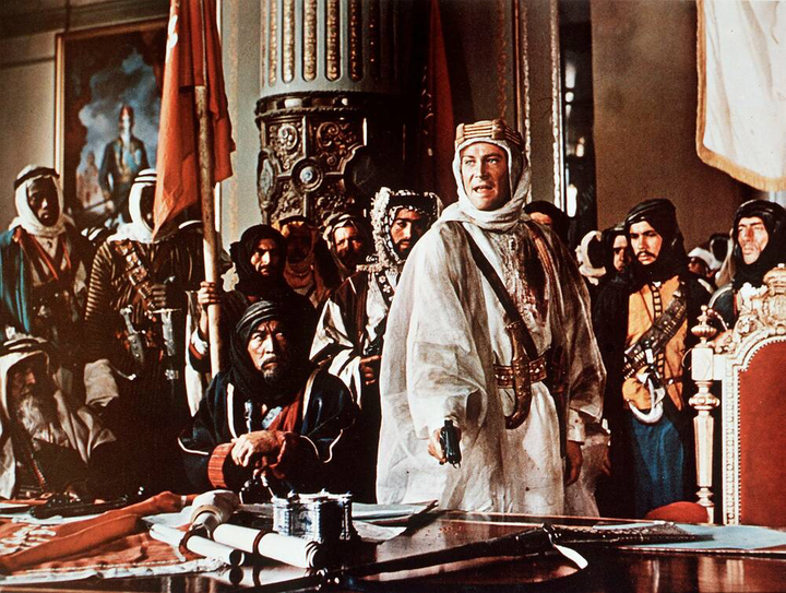 一战时,英国军官T·E·劳伦斯在开罗情报部及英国外交部阿拉伯局任职,期间拉拢阿拉伯部族,协助阿拉伯起义对抗奥斯曼帝国。电影主题包括劳伦斯与战争中暴力的情感斗争,对个人身份的认同(“你是谁?”是影片中反复出现的台词),以及在他祖国的英军与他新结交的阿拉伯游牧部落之间如何作出选择。 而这个母题在把“反思”、“理客中”、“清醒”、“圣母”、“体面”这些词直接拿来当贬义词使用并信奉“非我族类 其心必异”的群体里,即使被拿出来讨论都是非常的不合时宜的。