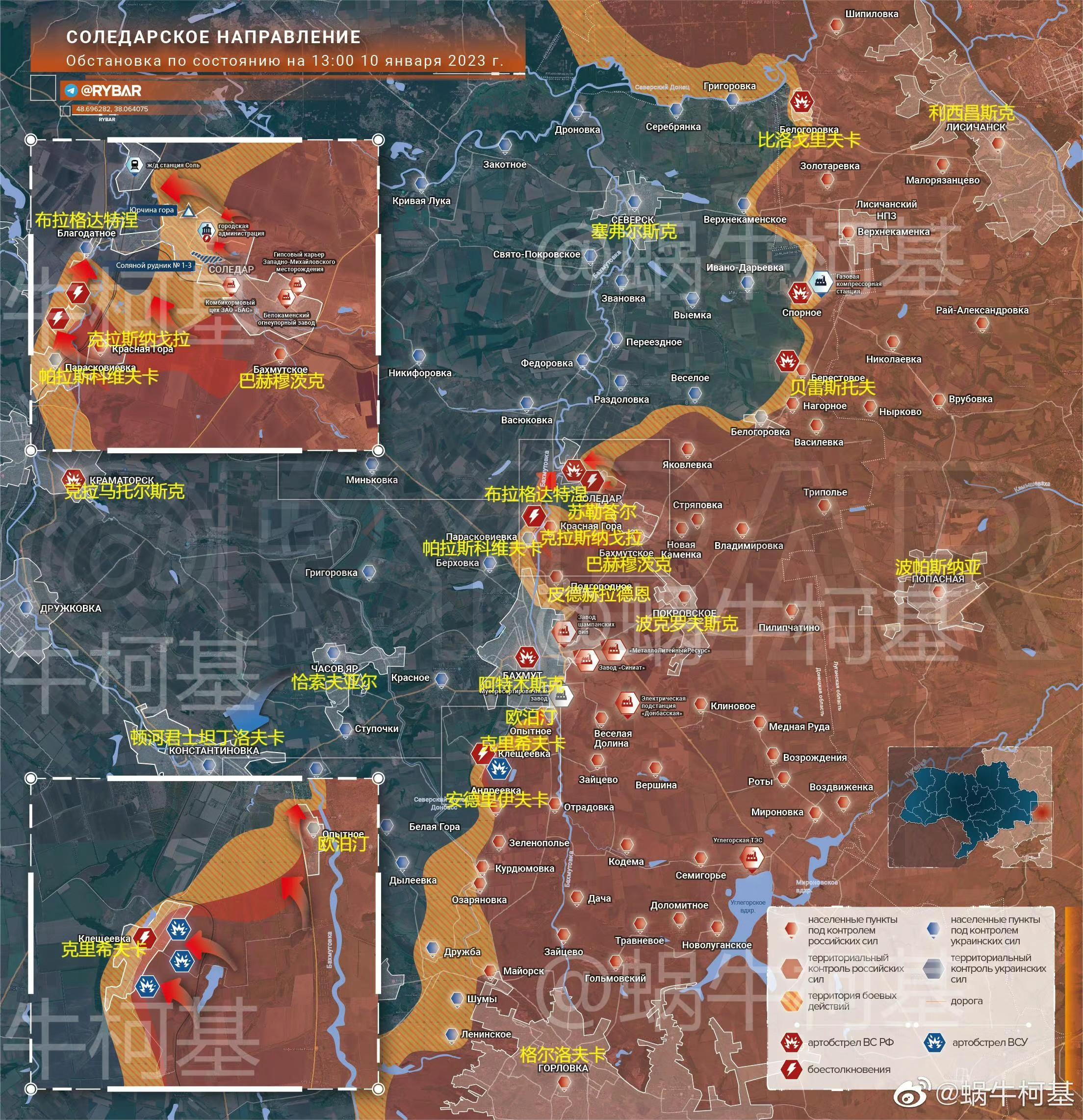 而乌军的阿特木斯克集群如图上所见,有恰索夫亚尔和顿河君士坦丁两座距离极近的城市作为掩护,几乎没有被合围的风险,个人认为将兵力耗费在进攻阿特木斯克上并无战略上的意义。