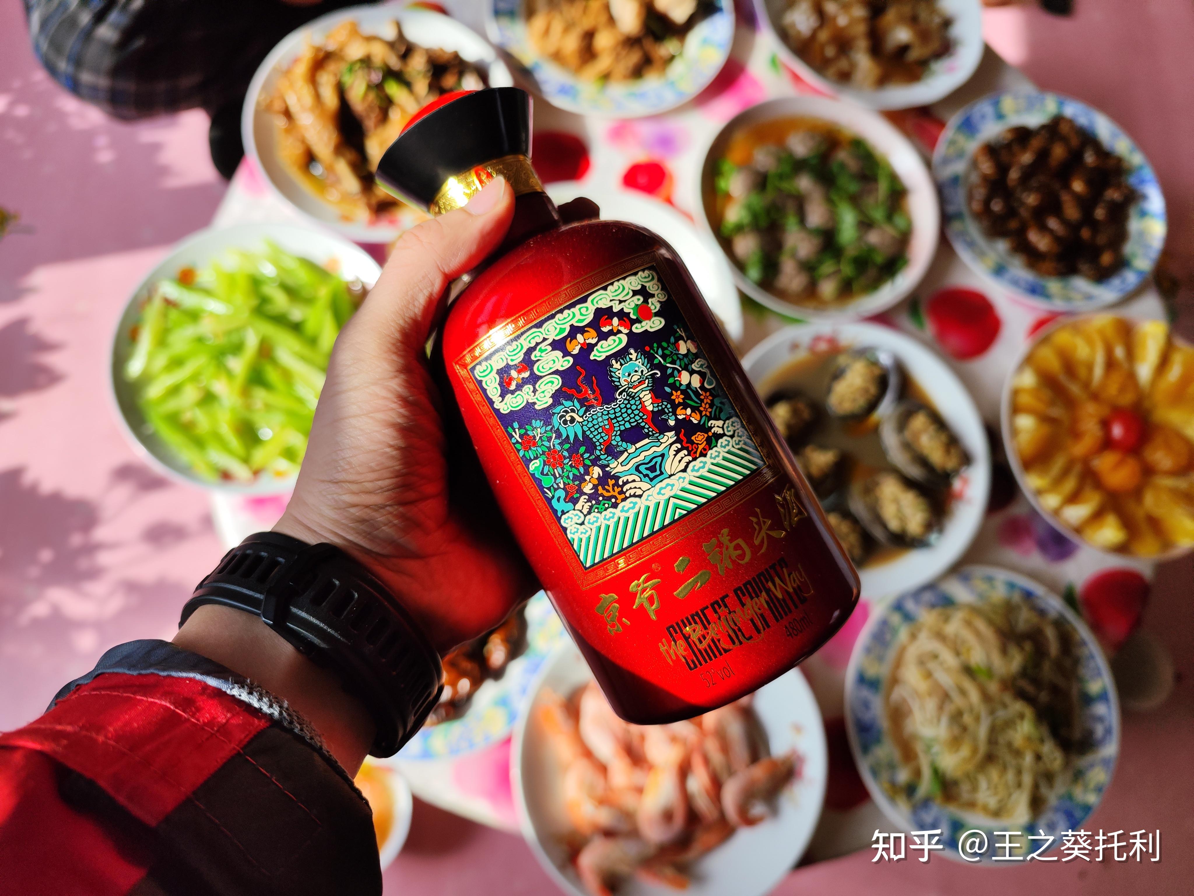 喝的,给我爸整了瓶京爷二锅头,喝了一杯,我尝了一下,52度,酒劲挺大的。