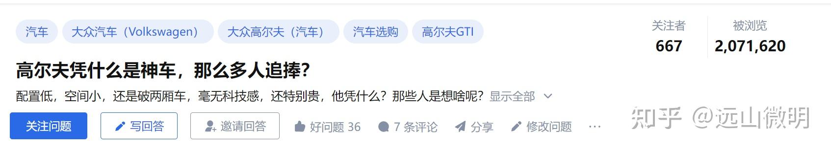 在知乎上,高尔夫这项运动的热度,远远比不过高尔夫这款车