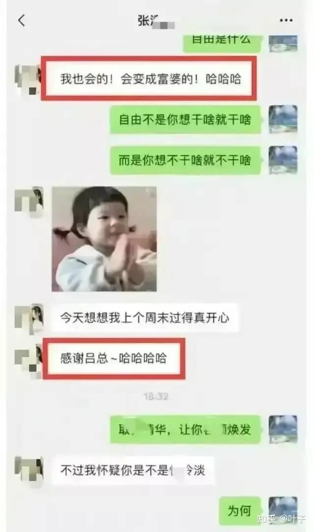 根据之前爆料的聊天记录不难发现,张津瑜对吕总特别积极热情,她在很主动的讨好对方,而且还表示自己想财富自由,想当富婆。