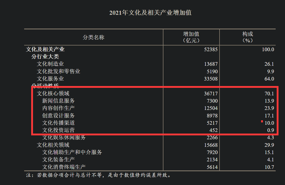 实际我国核心版权产业应该只占GDP3.3%左右(2021年全国文化及相关产业增加值占GDP4.56%)。这里面都是精华而且白领的中高端岗位。