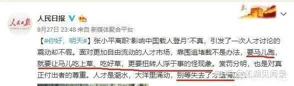 因为他离职这事,连人民日报都看不下去了。再给大家讲一个真事。就是2018年的张小平事件。