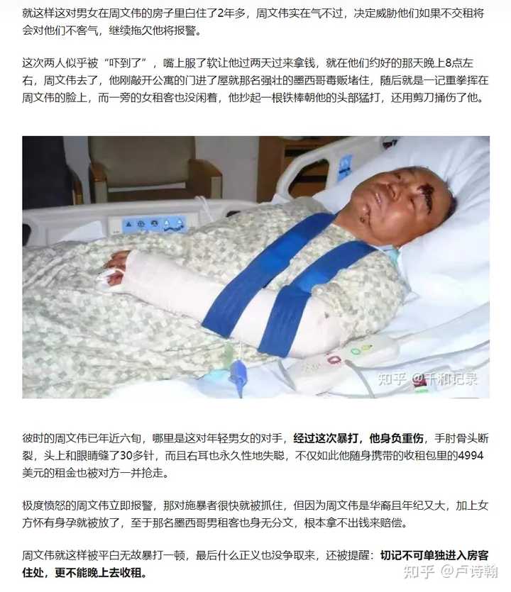 努力工作一辈子攒了钱在美国买了12套房,以为能靠收房租养老,结果遇到很多租客不给租金,尤其夸张的一个租客整整白租了两年,他实在忍无可忍去强制驱逐,结果被对方打断了手,耳朵也被打聋,报警也无法解决。